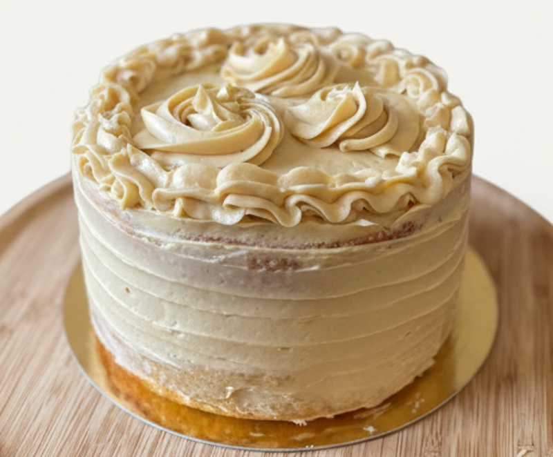 Tarta 2: Bizcochos de vainilla, crema namelaka de vainilla y trocitos de galletas Príncipe.